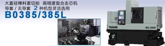 ●采用TSUGAMI独有的双主轴结构,重切削能力更强、余料更短(B0385)